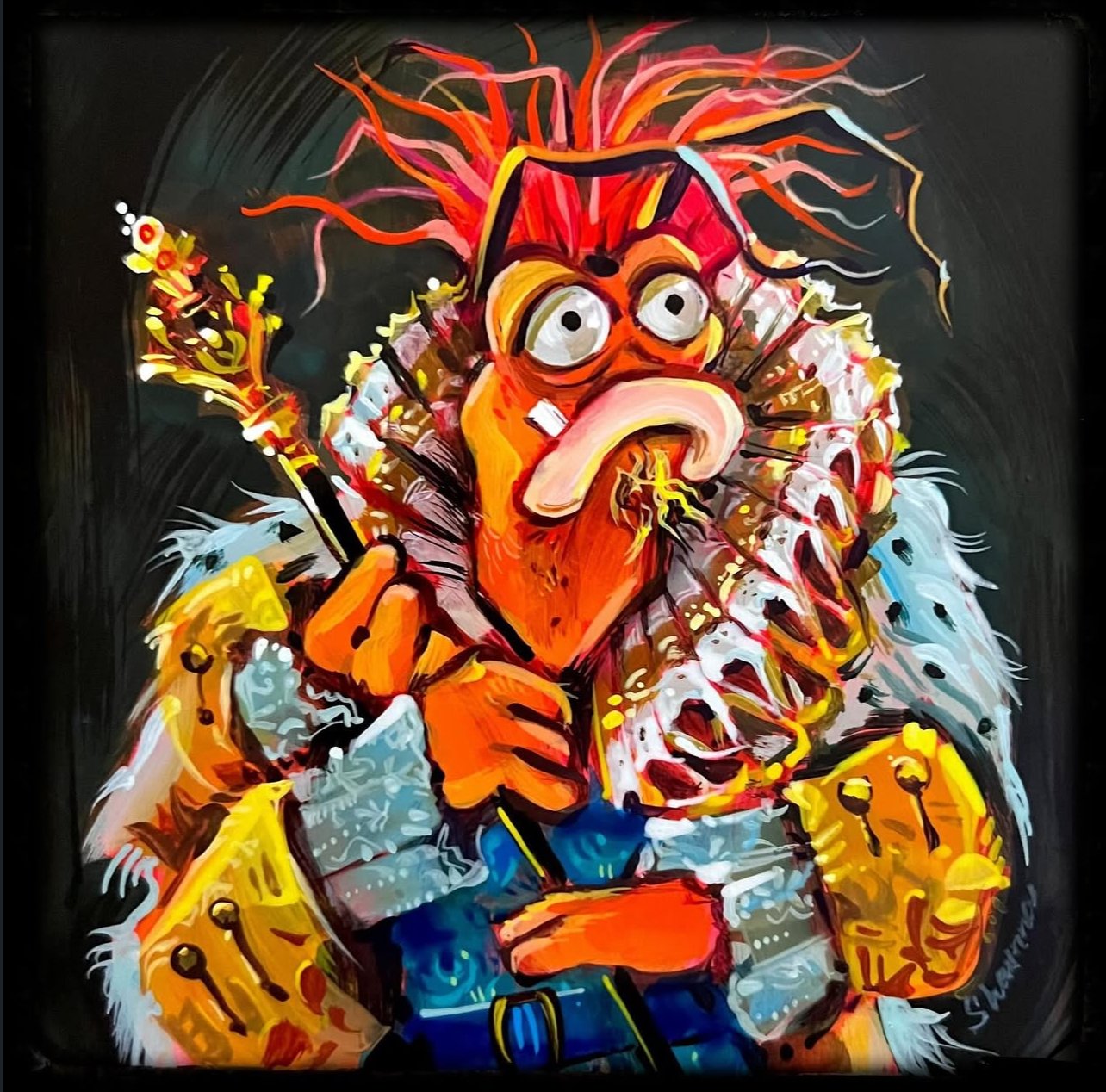 Pepe the King Prawn. Acrylic on wood. Can be hung or comes with small wood stand. 5 x 5"